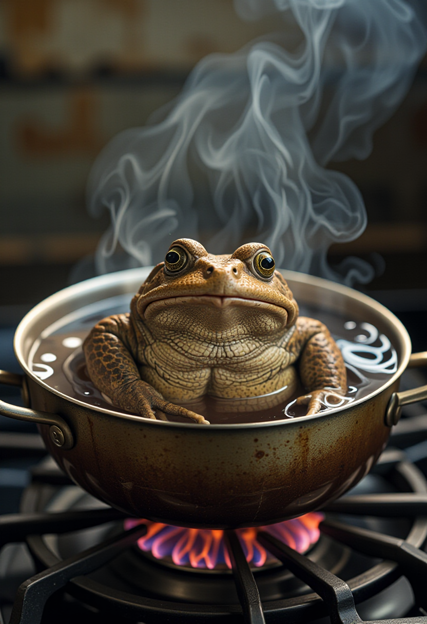 - water had just come to a simmer, and the skin of the toad was starting to turn pink, breathtaking