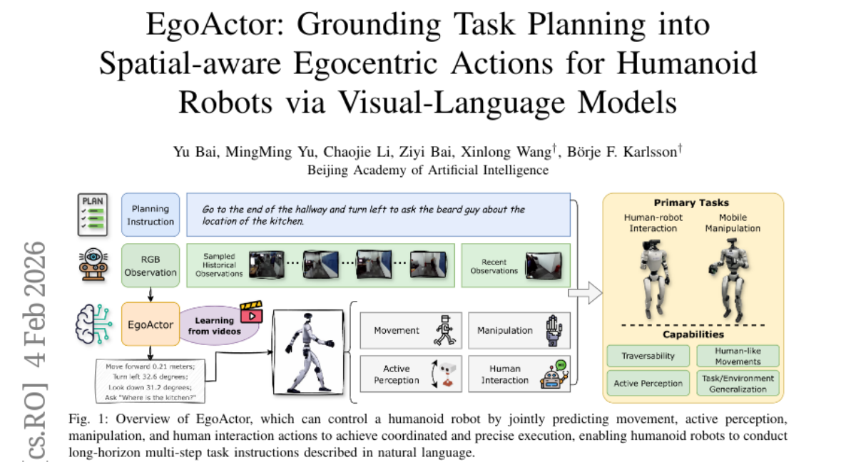 EgoActor: Grounding Task Planning into Spatial-aware Egocentric Actions for Humanoid Robots via Visual-Language Models