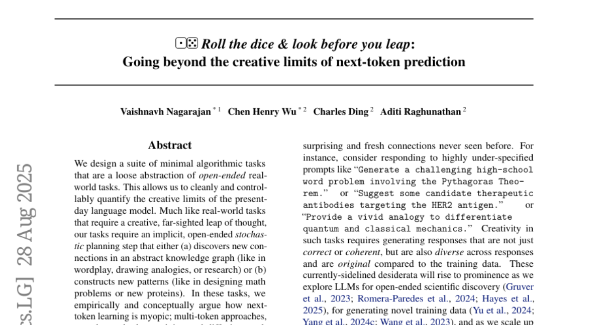 Roll the dice & look before you leap: Going beyond the creative limits of next-token prediction