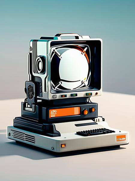 > product photo, ( retro cyber tech ) , reflective , Ella Guru, f 8 aperture, a 3D render, new objectivity