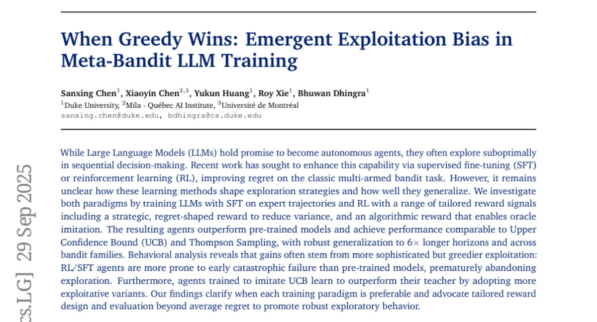 When Greedy Wins: Emergent Exploitation Bias in Meta-Bandit LLM Training