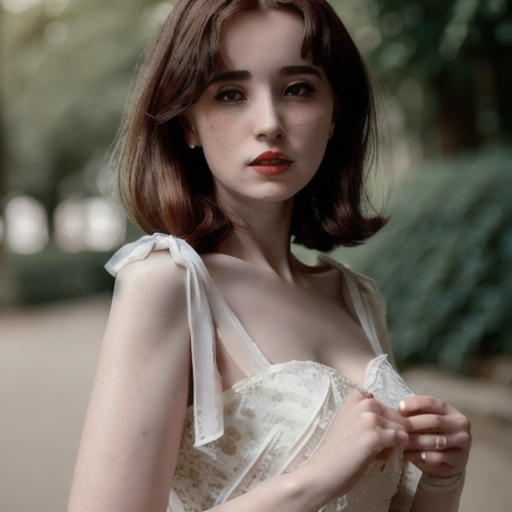 image = pipeline('a portrait of a woman wearing libr dress, bokeh, cinematic').images[0]