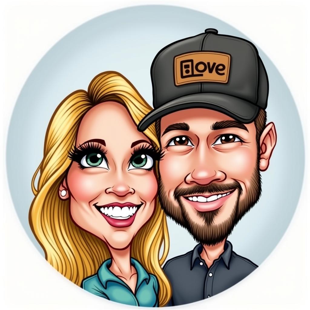 CCTUR3 Adorable couple with caricatured features share a loving moment, her