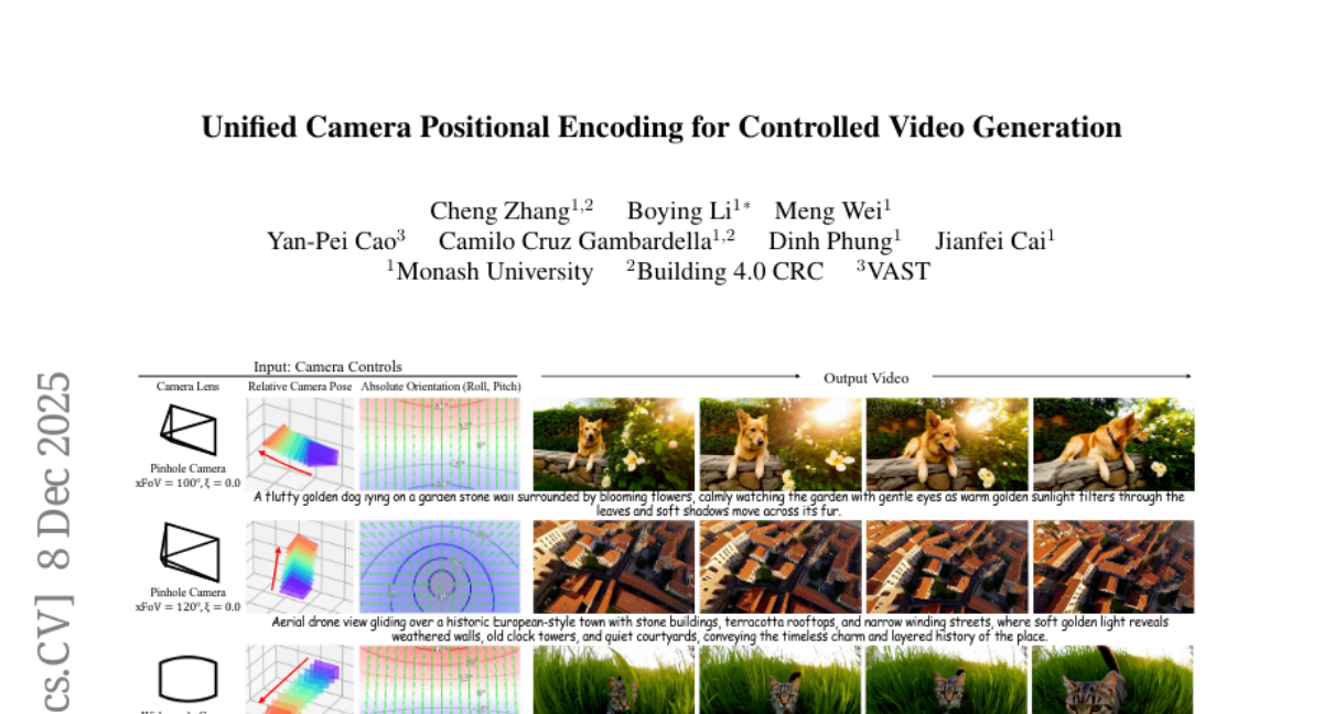 Unified Camera Positional Encoding for Controlled Video Generation