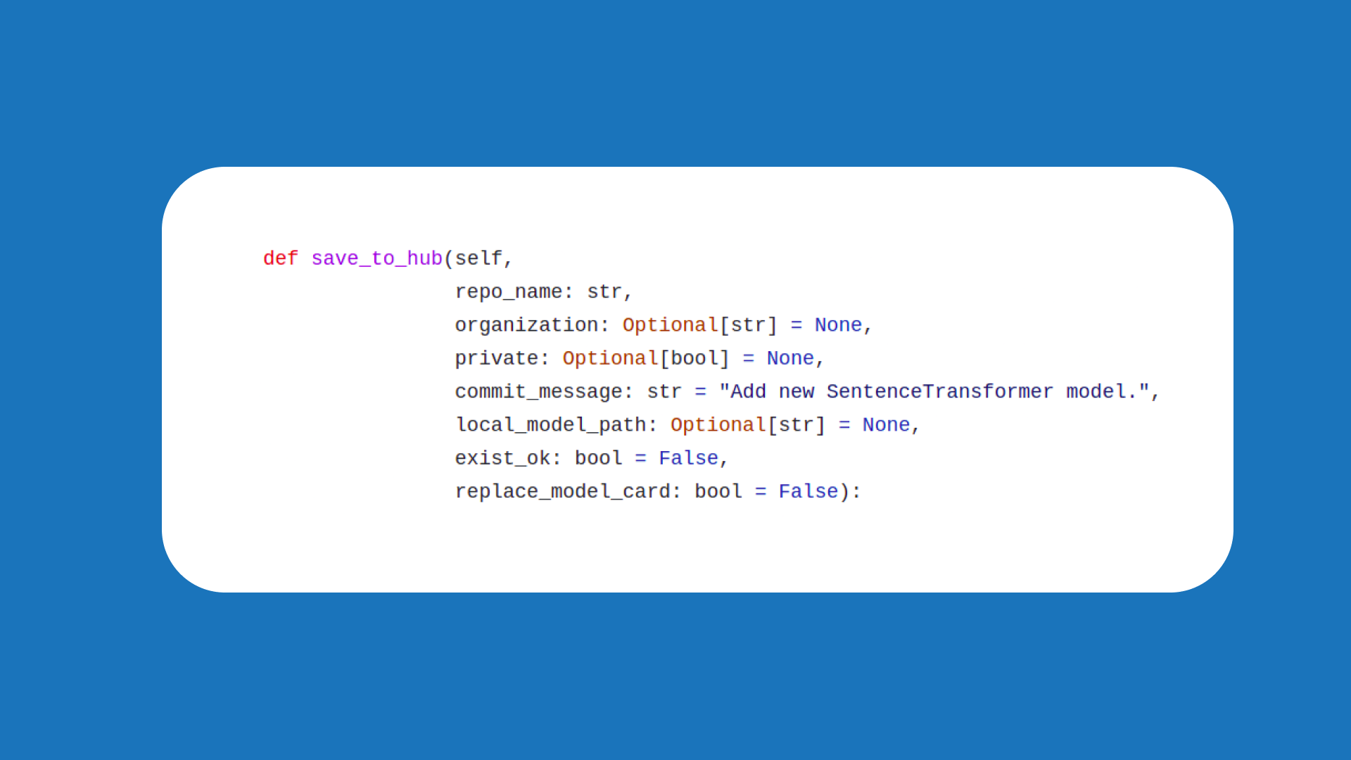 Hugging Face makes it easy to collaboratively build and showcase your Sentence Transformers models! You can collaborate with your organization, upload and showcase your own models in your profile ❤️