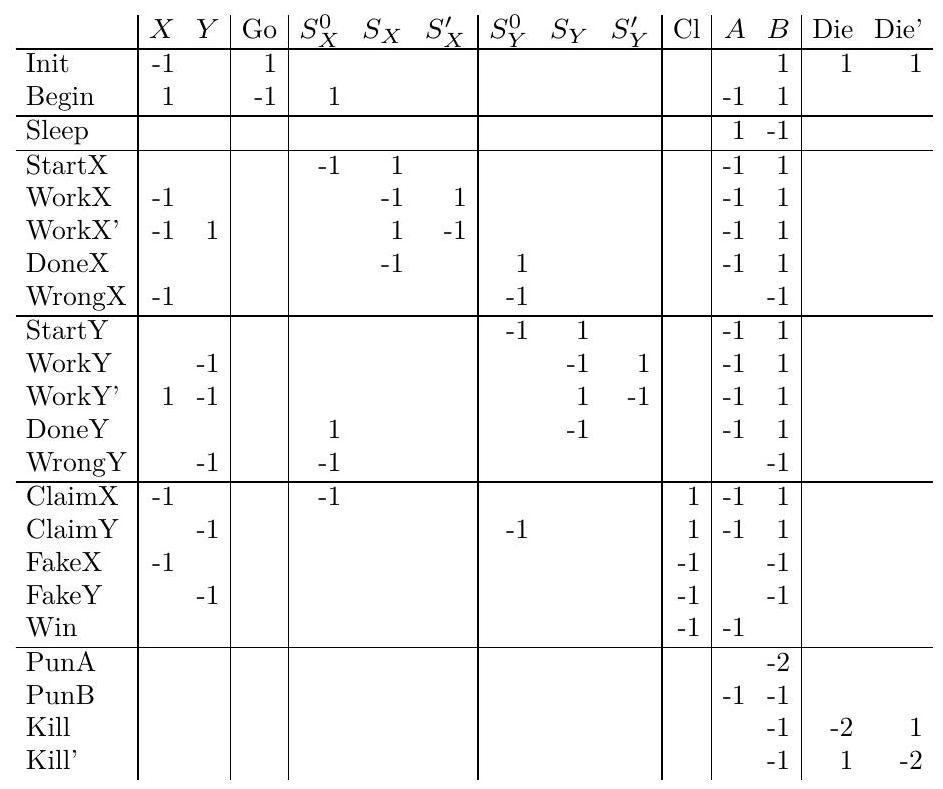 Now, the "game" is played as follows. The mechanics are controlled by the turn counters $A$ and $B$. Observe the game starts with Alice playing Init. Thereafter, we say that the game is - In the main part if $A+B=1$, and no one has played Init a second time. - In the death part otherwise. Observe that in the main state, on Alice's turn we always have $(A, B)=(1,0)$ and on Bob's turn we always have $(A, B)=(0,1)$. Claim - A player who plays Init a second time must lose. In particular, a player who makes a move when $A=B=0$ must lose. - Suppose the offending player is in a situation where $A=B=0$. Then he/she must play Init. At this point, the opposing player can respond by playing Kill. Then the offending player must play Init again. The opposing player now responds with Kill'. This iteration continues until $X$ reaches a negative number and the offending player loses. - Suppose Alice has $(A, B)=(1,0)$ but plays Init again anyways. Then Bob responds with PunB to punish her; he then wins as in the first case. - Suppose Bob has $(A, B)=(0,1)$ but plays Init again anyways. Alice responds with PunA in the same way. Thus we may assume that players avoid the death part at all costs. Hence the second moves consist of Bob playing Sleep, and then Alice playing Begin (thus restoring the value of $n$ in $X$ ), then Bob playing Sleep. Now we return to analysis of the main part. We say the game is in state $S$ for $S \in$ $\left\{S_{X}^{0}, S_{X}, S_{X}^{\prime}, S_{Y}^{0}, S_{Y}, S_{Y}^{\prime}, \mathrm{Cl}\right\}$ if $S=1$ and all other variables are zero. By construction, this is always the case. From then on the main part is divided into several phases: - An $X$-phase: this begins with Alice at $S_{X}^{0}$, and ends when the game is in a state other than $S_{X}$ and $S_{X}^{\prime}$. (She can never return to $S_{X}^{0}$ during an $X$-phase.) - A $Y$-phase: this begins with Alice at $S_{Y}^{0}$, and ends when the game is in a state other than $S_{Y}$ and $S_{Y}^{\prime}$. (She can never return to $S_{Y}^{0}$ during a $Y$-phase.) Claim - Consider an $X$-phase in which $(X, Y)=(x, 0), x>1$. Then Alice can complete the phase without losing if and only if $x$ is even; if so she begins a $Y$-phase with $(X, Y)=(0, x / 2)$. Now note that unless $X=0$, Bob now has a winning move WrongX. Conversely he may only play Sleep if $X=0$. We have an analogous claim for $Y$-phases. Thus if $n$ is not a power of 2 , we see that Alice eventually loses. Now suppose $n=2^{k}$; then Alice reaches $(X, Y)=\left(0,2^{k-1}\right),\left(2^{k-2}, 0\right), \ldots$ until either reaching $(1,0)$ or $(0,1)$. At this point she can play ClaimX or ClaimY, respectively; the game is now in state Cl. Bob cannot play either FakeX or FakeY, so he must play Sleep, and then Alice wins by playing Win. Thus Alice has a winning strategy when $n=2^{k}$.