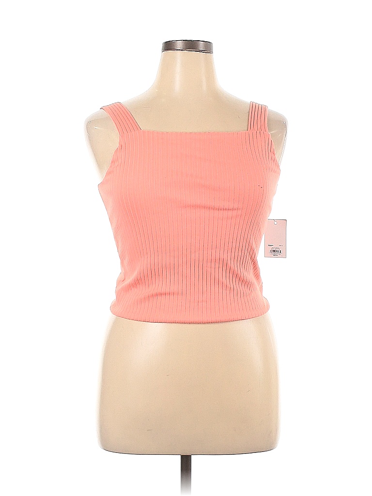 A pink striped shirt is showcased on a white body by a standing mannequin, with a solid orange sleeveless top available in size XL at 60% off.