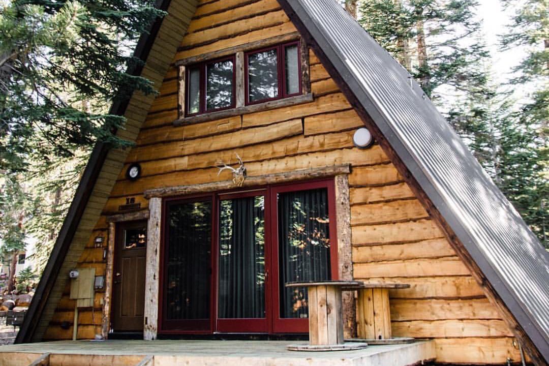 A picturesque log cabin with a spacious porch, nestled in a forest, creates a serene ambiance for a family cabin getaway, as organized by Corey Page.