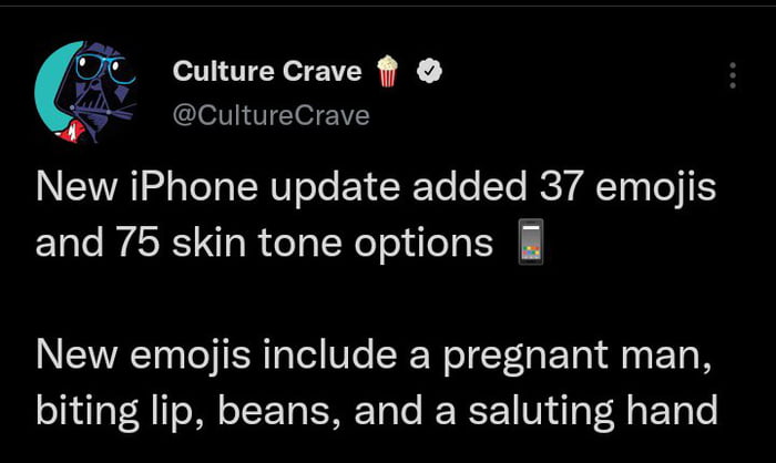 The cell phone screen displays a series of messages, including an update for a skin tone option, pregnancy dip, bean options, and a salute, all presented in a black and white photo.