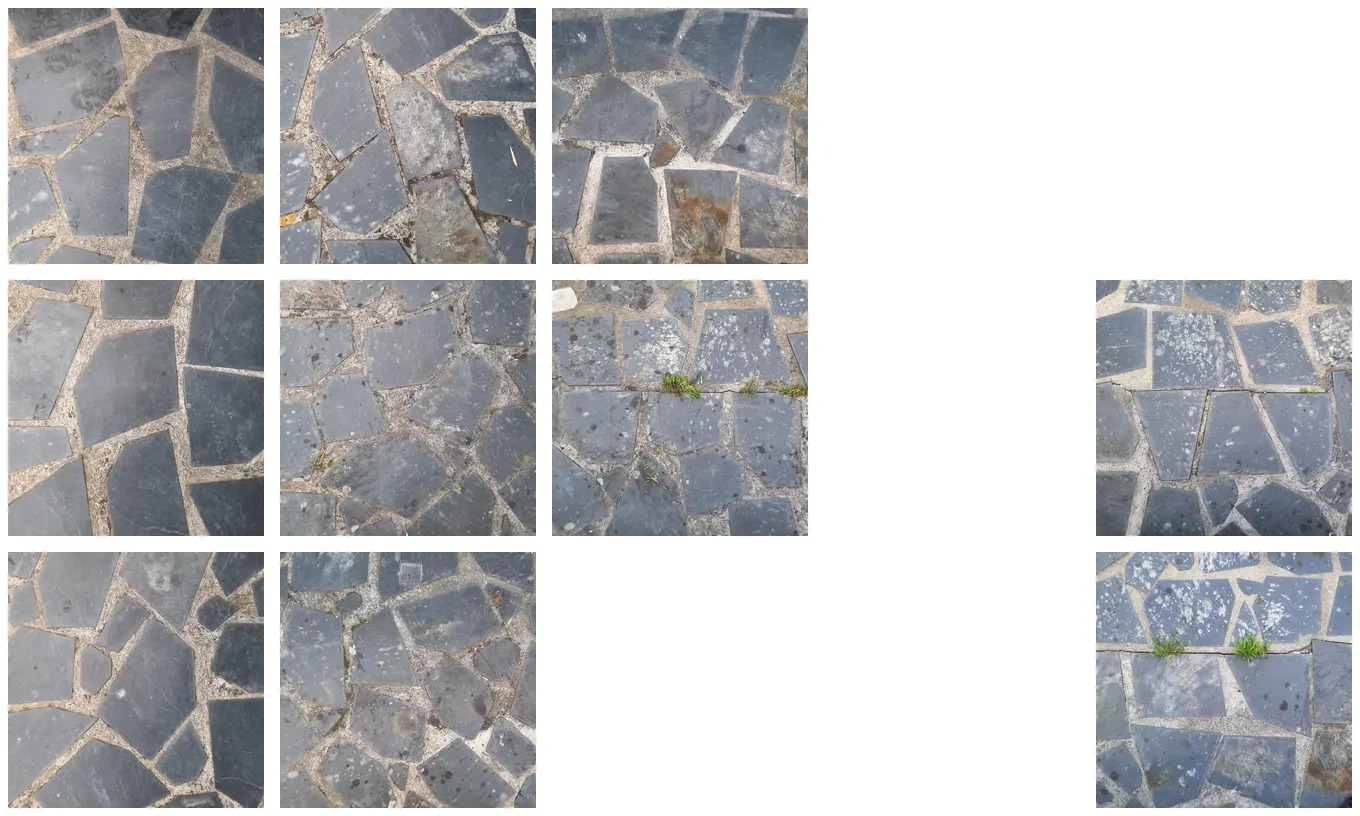 This dataset contains multi-photo texture captures in outdoor urban scenes — many focusing on the ground and the others are walls. Each set has different photos that showcase texture variety, making them ideal for training a domain-specific image generator!