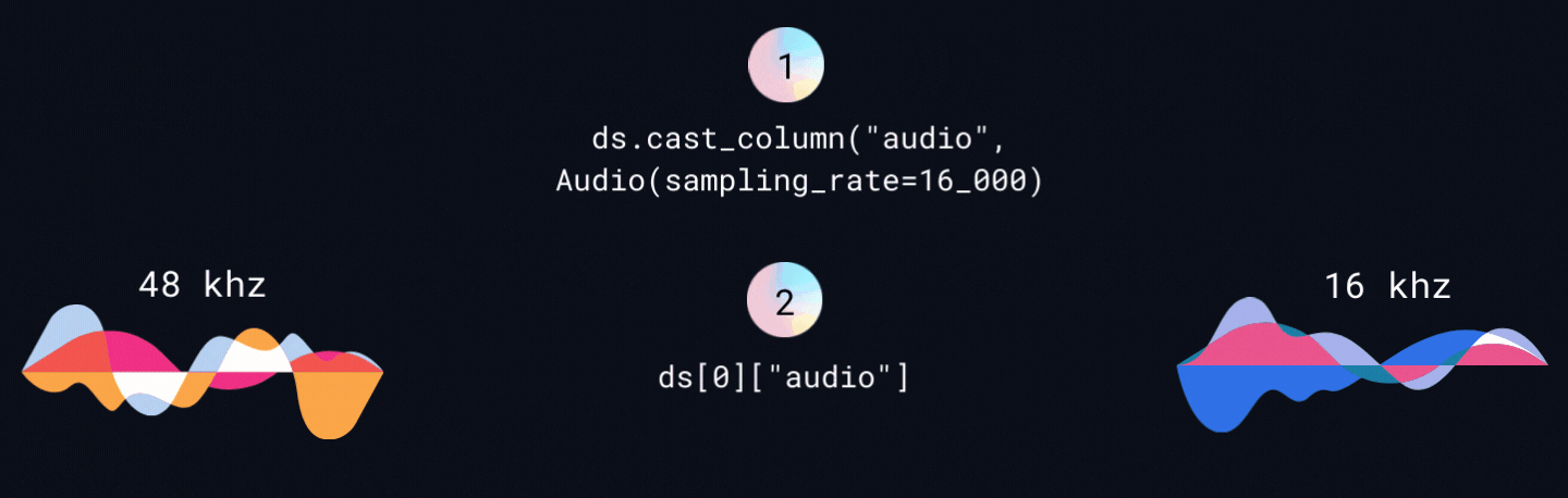 >>> dataset = dataset.cast_column("audio", Audio(sampling_rate=16000))