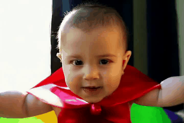 ![]() | ![]() | The video features a baby wearing a bright superhero cape, standing confidently with arms raised in a powerful pose. The baby has a determined look on their face, with eyes wide and lips pursed in concentration, as if ready to take on a challenge. The setting appears playful, with colorful toys scattered around and a soft rug underfoot, while sunlight streams through a nearby window, highlighting the fluttering cape and adding to the impression of heroism. The overall atmosphere is lighthearted and fun, with the baby's expressions capturing a mix of innocence and an adorable attempt at bravery, as if truly ready to save the day. |