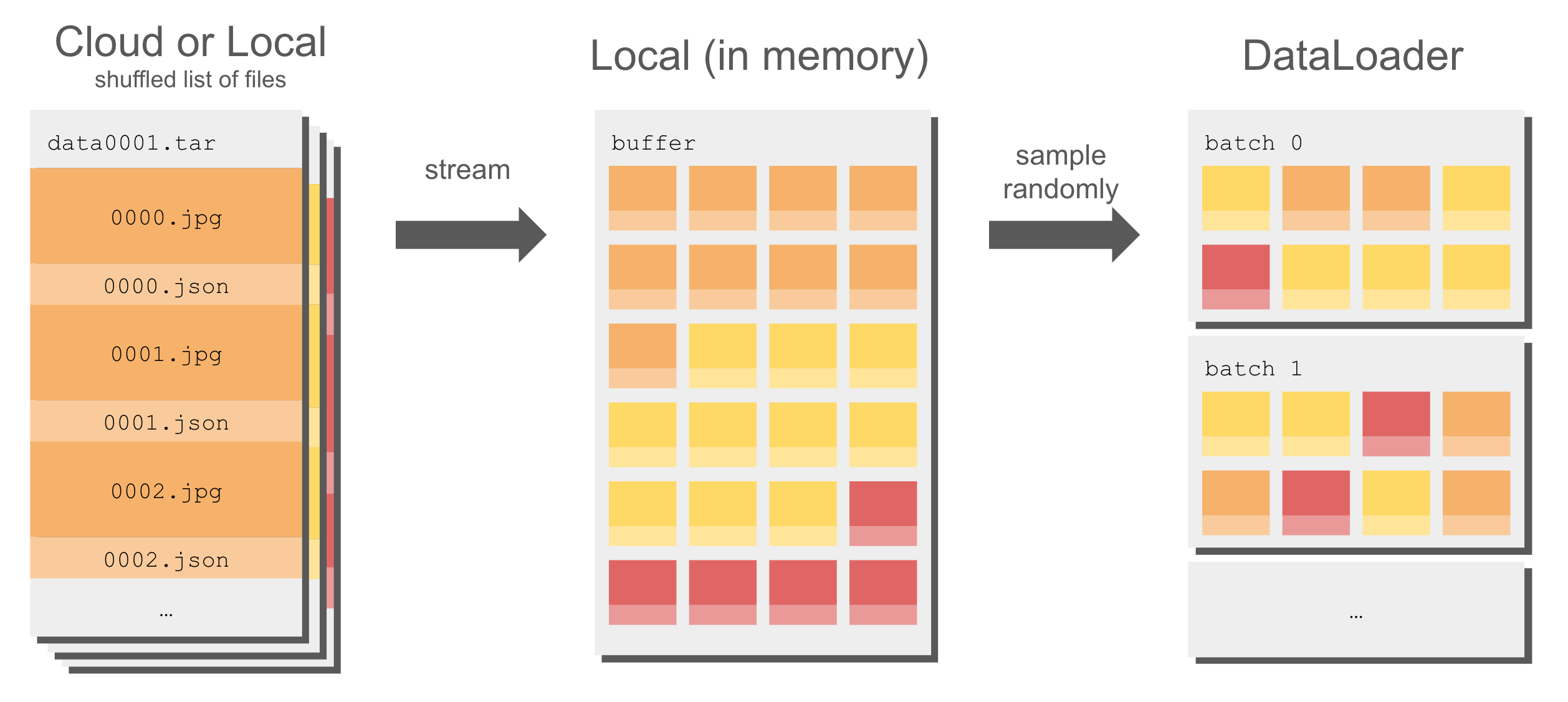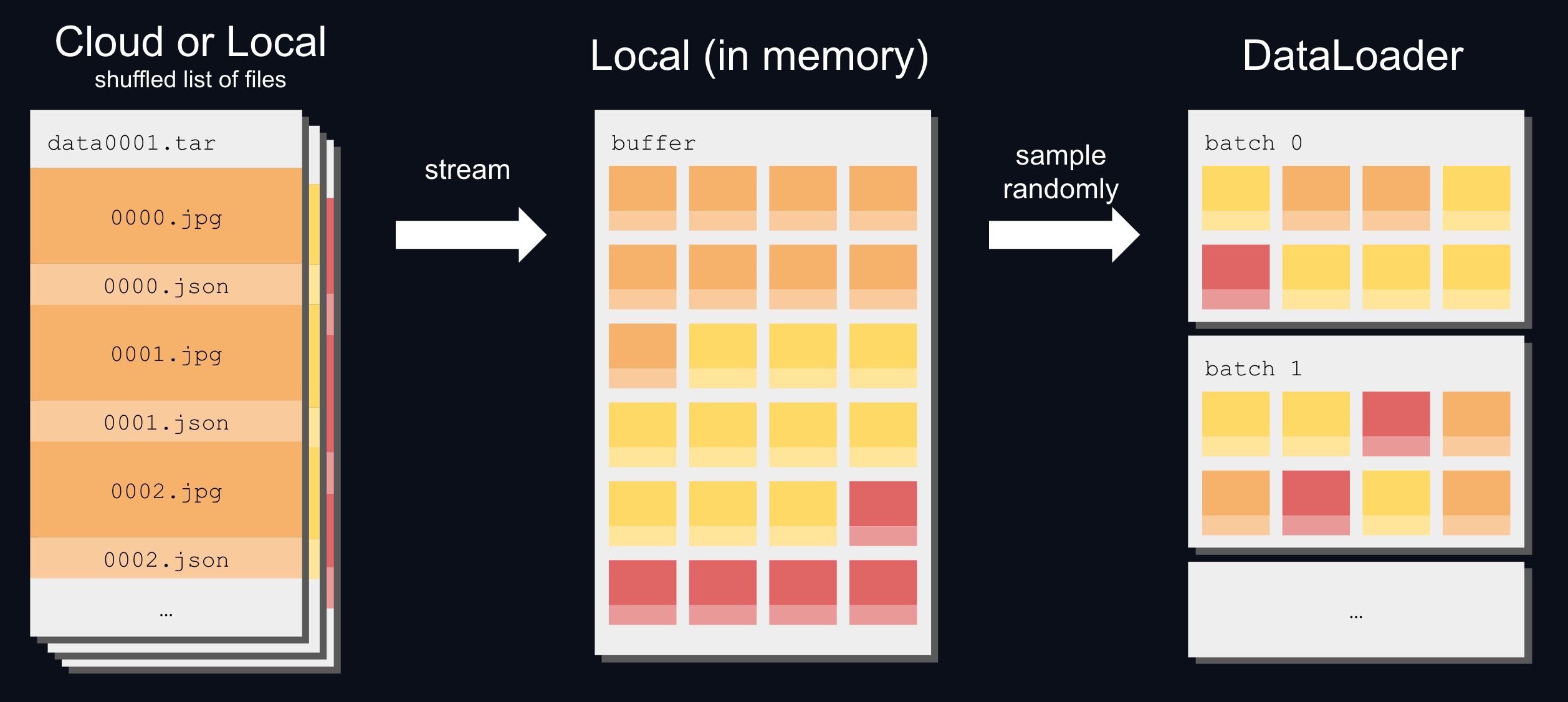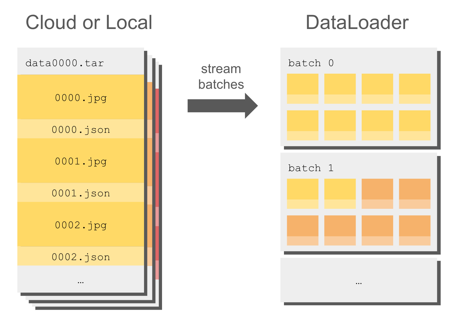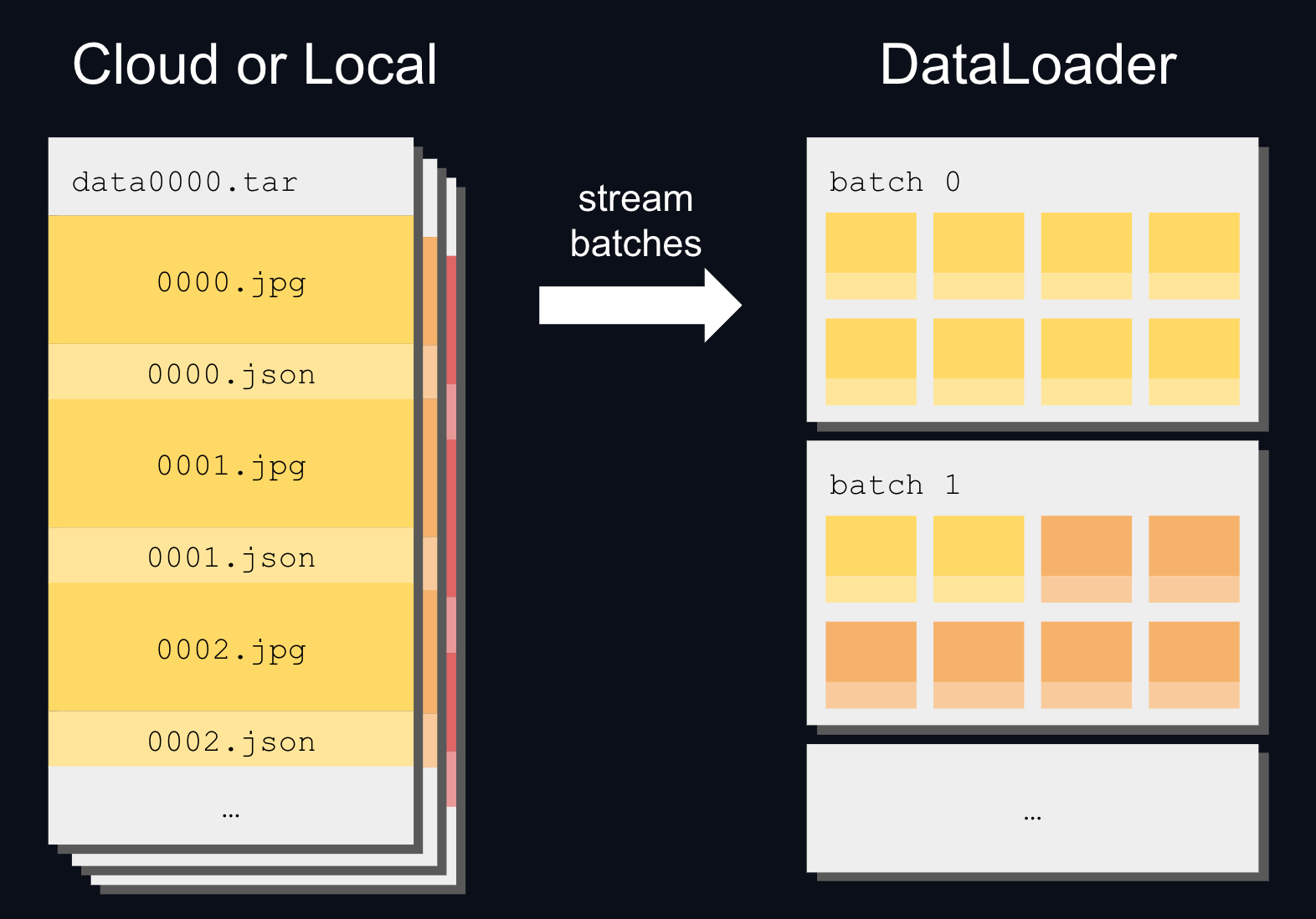 WebDataset streaming offers high-speed performance both when reading from disk and from cloud storage, which makes it an ideal format to feed to a DataLoader: