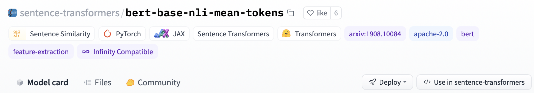 as a way to determine how similar is a given sentence to other. You can also find an overview of the official pre-trained models in the official docs.