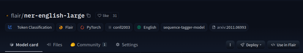 - Official Flair models on the Hub (mainly trained by @alanakbik and @stefan-it)