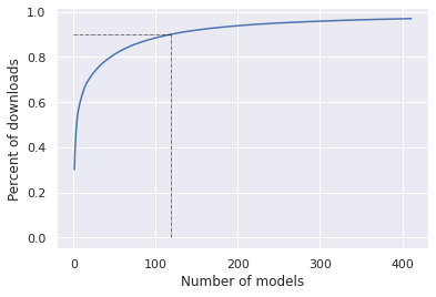 From our analysis of all the models on the hub, we noticed that the most downloads come from top 200 models.