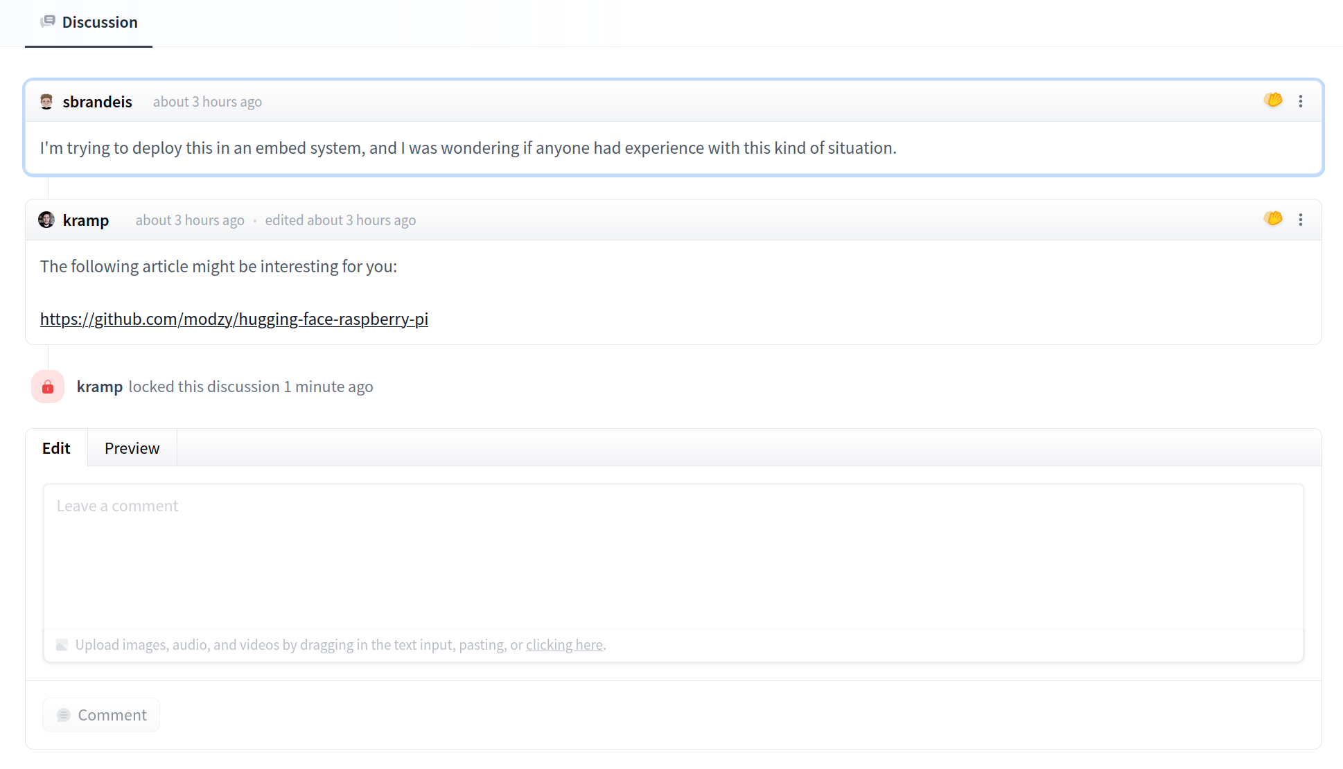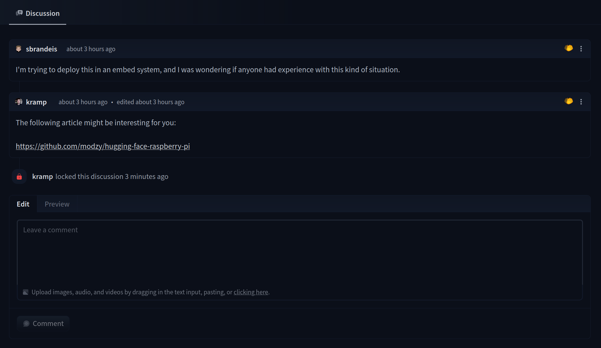 If you have write access to a repository, you can lock discussions or Pull Requests. Once a discussion is locked, previous comments are still visible and users won’t be able to add new comments.