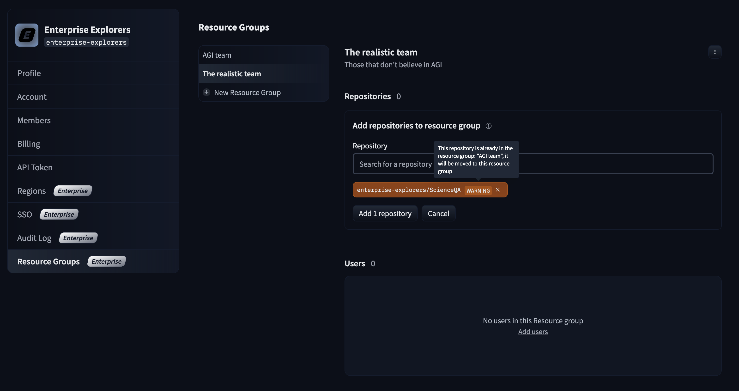 Remember that a repository can be part of only one Resource Group. You’ll be warned when trying to add a repository that already belongs to another Resource Group.