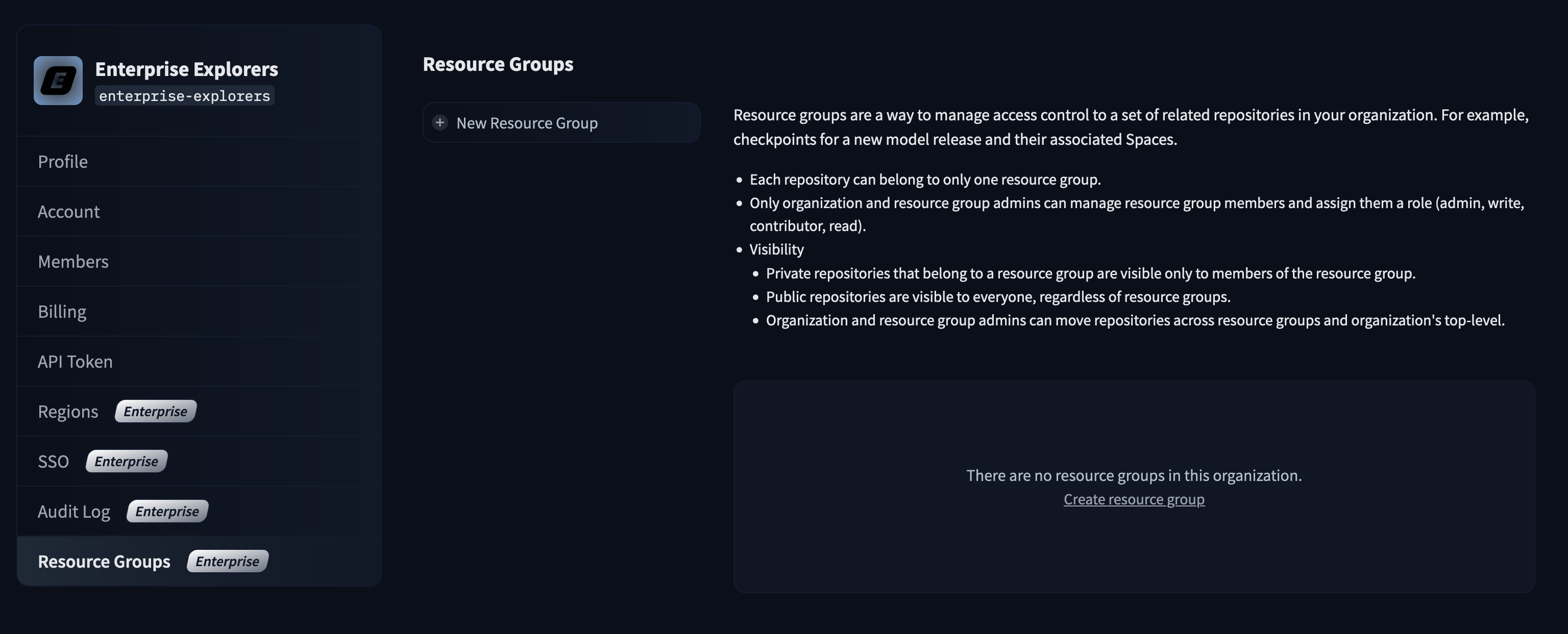 If you are an admin of the organization, you can create and manage Resource Groups from that page.