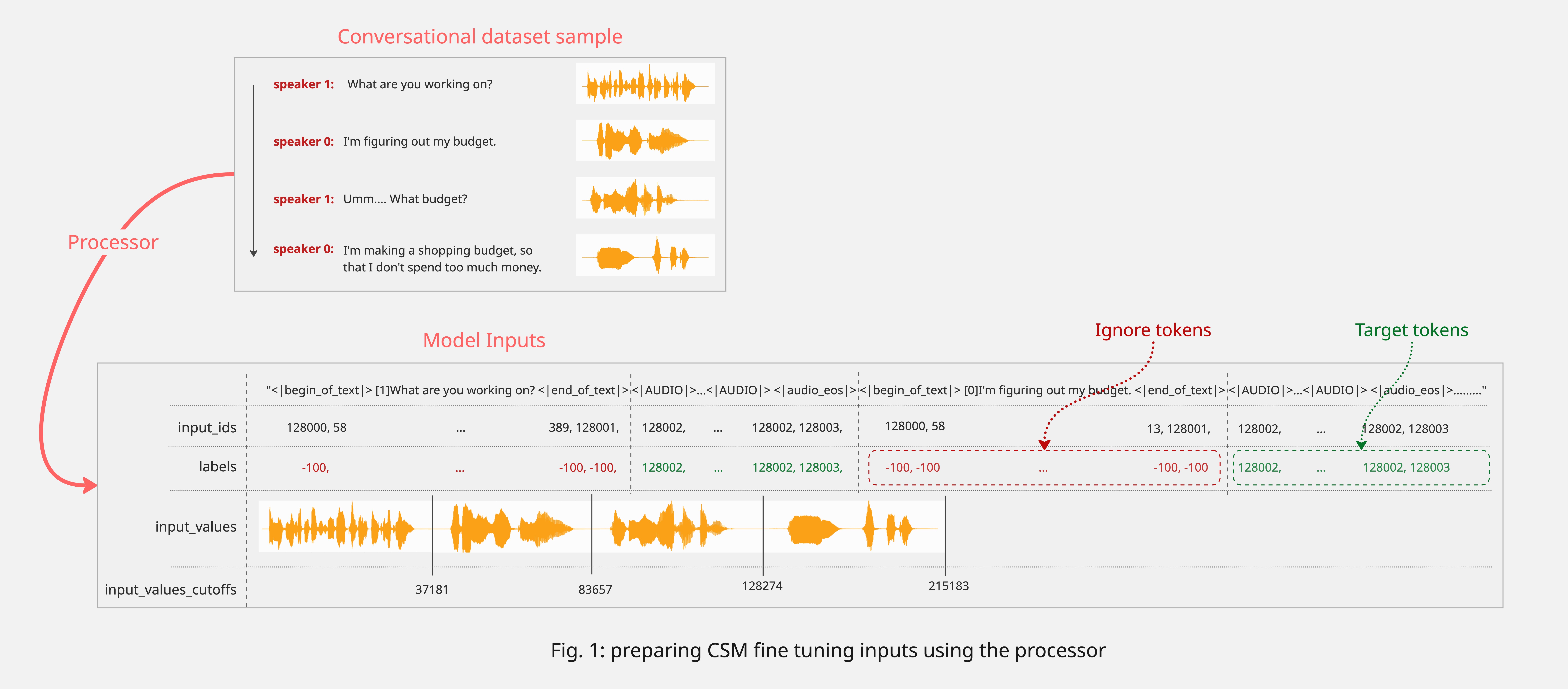 >>> from transformers import CsmProcessor, CsmForConditionalGeneration
