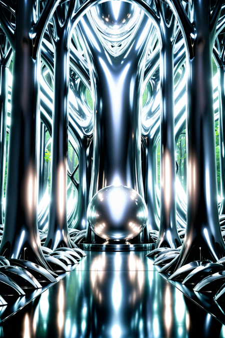 - text: 'metallic, brightly lit interior, in a Formal Enchanted forest glade'