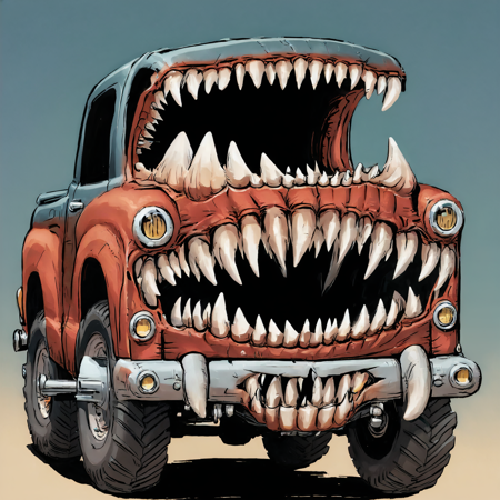 a pickup truck mimic with large teeth