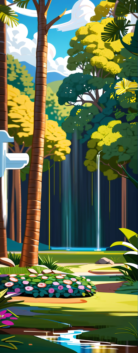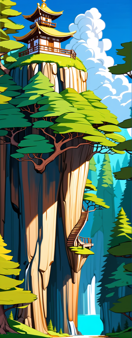- precarious, digital painting, noon, blue sky, clouds, scenery, in a Boreal Forest (Taiga)