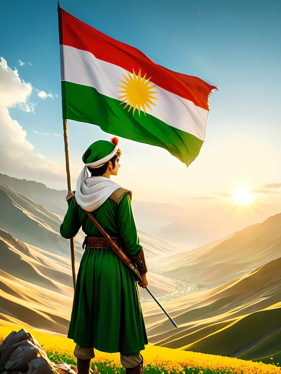 - 1boy, hold a Kurdistan_Flag, <lora:Kurdistan_Flag:1>