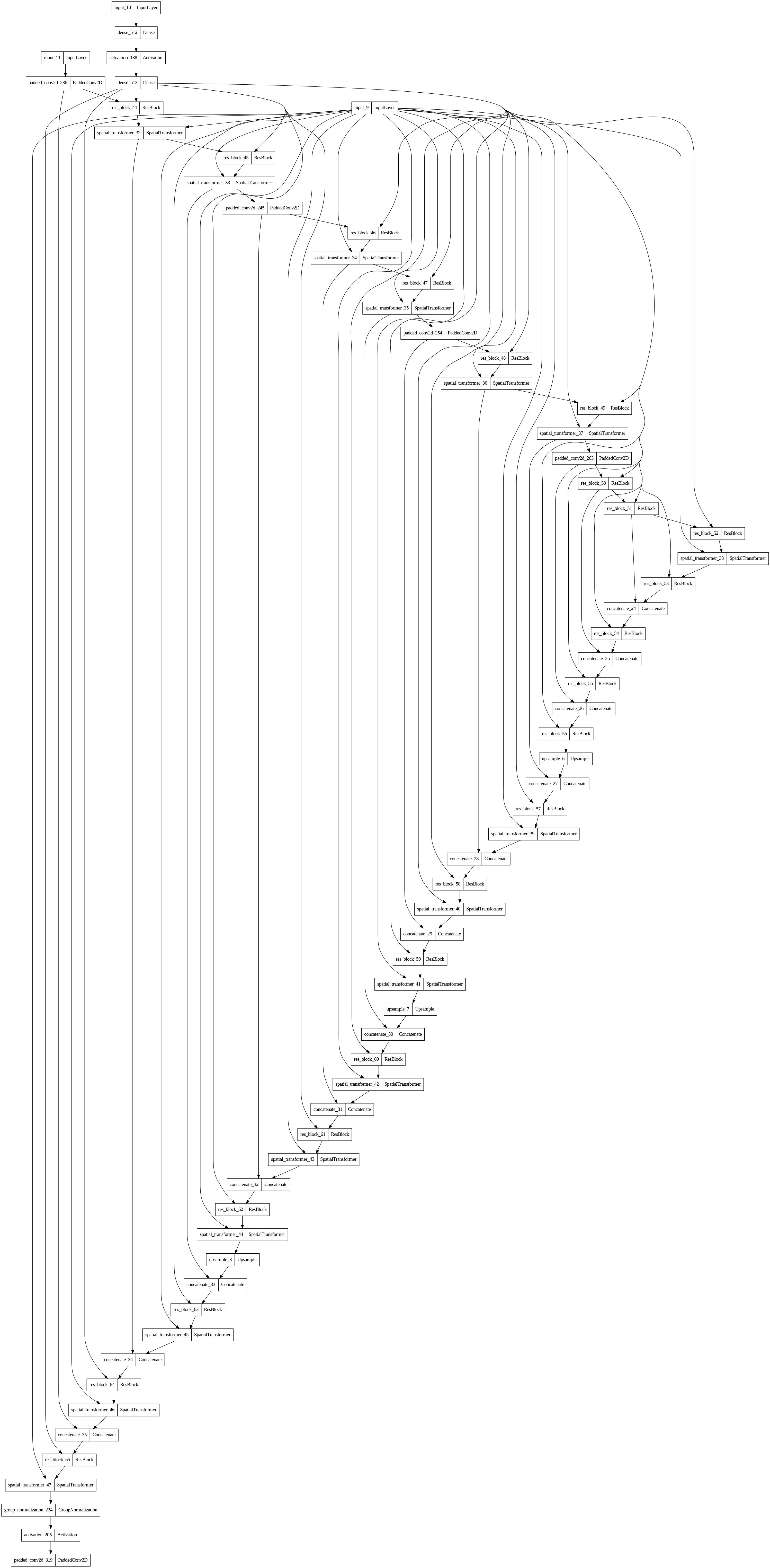 {"name": "diffusion_model_2", "layers": [{"class_name": "InputLayer", "config": {"batch_input_shape": [null, 320], "dtype": "float32", "sparse": false, "ragged": false, "name": "input_10"}, "name": "input_10", "inbound_nodes": []}, {"class_name": "Dense", "config": {"name": "dense_512", "trainable": true, "dtype": {"class_name": "Policy", "config": {"name": "mixed_float16"}, "shared_object_id": 1}, "units": 1280, "activation": "linear", "use_bias": true, "kernel_initializer": {"class_name": "GlorotUniform", "config": {"seed": null}}, "bias_initializer": {"class_name": "Zeros", "config": {}}, "kernel_regularizer": null, "bias_regularizer": null, "activity_regularizer": null, "kernel_constraint": null, "bias_constraint": null}, "name": "dense_512", "inbound_nodes": [[["input_10", 0, 0, {}]]]}, {"class_name": "InputLayer", "config": {"batch_input_shape": [null, 64, 64, 4], "dtype": "float32", "sparse": false, "ragged": false, "name": "input_11"}, "name": "input_11", "inbound_nodes": []}, {"class_name": "Activation", "config": {"name": "activation_138", "trainable": true, "dtype": {"class_name": "Policy", "config": {"name": "mixed_float16"}, "shared_object_id": 1}, "activation": "swish"}, "name": "activation_138", "inbound_nodes": [[["dense_512", 0, 0, {}]]]}, {"class_name": "PaddedConv2D", "config": {"name": "padded_conv2d_236", "trainable": true, "dtype": {"class_name": "Policy", "config": {"name": "mixed_float16"}, "shared_object_id": 1}, "kernel_size": 3, "padding": 1, "filters": 320}, "name": "padded_conv2d_236", "inbound_nodes": [[["input_11", 0, 0, {}]]]}, {"class_name": "Dense", "config": {"name": "dense_513", "trainable": true, "dtype": {"class_name": "Policy", "config": {"name": "mixed_float16"}, "shared_object_id": 1}, "units": 1280, "activation": "linear", "use_bias": true, "kernel_initializer": {"class_name": "GlorotUniform", "config": {"seed": null}}, "bias_initializer": {"class_name": "Zeros", "config": {}}, "kernel_regularizer": null, "bias_regularizer": null, "activity_regularizer": null, "kernel_constraint": null, "bias_constraint": null}, "name": "dense_513", "inbound_nodes": [[["activation_138", 0, 0, {}]]]}, {"class_name": "ResBlock", "config": {"name": "res_block_44", "trainable": true, "dtype": {"class_name": "Policy", "config": {"name": "mixed_float16"}, "shared_object_id": 1}, "output_dim": 320}, "name": "res_block_44", "inbound_nodes": [[["padded_conv2d_236", 0, 0, {}], ["dense_513", 0, 0, {}]]]}, {"class_name": "InputLayer", "config": {"batch_input_shape": [null, 77, 768], "dtype": "float32", "sparse": false, "ragged": false, "name": "input_9"}, "name": "input_9", "inbound_nodes": []}, {"class_name": "SpatialTransformer", "config": {"name": "spatial_transformer_32", "trainable": true, "dtype": {"class_name": "Policy", "config": {"name": "mixed_float16"}, "shared_object_id": 1}, "fully_connected": false, "num_heads": 8, "head_size": 40}, "name": "spatial_transformer_32", "inbound_nodes": [[["res_block_44", 0, 0, {}], ["input_9", 0, 0, {}]]]}, {"class_name": "ResBlock", "config": {"name": "res_block_45", "trainable": true, "dtype": {"class_name": "Policy", "config": {"name": "mixed_float16"}, "shared_object_id": 1}, "output_dim": 320}, "name": "res_block_45", "inbound_nodes": [[["spatial_transformer_32", 0, 0, {}], ["dense_513", 0, 0, {}]]]}, {"class_name": "SpatialTransformer", "config": {"name": "spatial_transformer_33", "trainable": true, "dtype": {"class_name": "Policy", "config": {"name": "mixed_float16"}, "shared_object_id": 1}, "fully_connected": false, "num_heads": 8, "head_size": 40}, "name": "spatial_transformer_33", "inbound_nodes": [[["res_block_45", 0, 0, {}], ["input_9", 0, 0, {}]]]}, {"class_name": "PaddedConv2D", "config": {"name": "padded_conv2d_245", "trainable": true, "dtype": {"class_name": "Policy", "config": {"name": "mixed_float16"}, "shared_object_id": 1}, "strides": 2, "padding": 1, "filters": 320, "kernel_size": 3}, "name": "padded_conv2d_245", "inbound_nodes": [[["spatial_transformer_33", 0, 0, {}]]]}, {"class_name": "ResBlock", "config": {"name": "res_block_46", "trainable": true, "dtype": {"class_name": "Policy", "config": {"name": "mixed_float16"}, "shared_object_id": 1}, "output_dim": 640}, "name": "res_block_46", "inbound_nodes": [[["padded_conv2d_245", 0, 0, {}], ["dense_513", 0, 0, {}]]]}, {"class_name": "SpatialTransformer", "config": {"name": "spatial_transformer_34", "trainable": true, "dtype": {"class_name": "Policy", "config": {"name": "mixed_float16"}, "shared_object_id": 1}, "fully_connected": false, "num_heads": 8, "head_size": 80}, "name": "spatial_transformer_34", "inbound_nodes": [[["res_block_46", 0, 0, {}], ["input_9", 0, 0, {}]]]}, {"class_name": "ResBlock", "config": {"name": "res_block_47", "trainable": true, "dtype": {"class_name": "Policy", "config": {"name": "mixed_float16"}, "shared_object_id": 1}, "output_dim": 640}, "name": "res_block_47", "inbound_nodes": [[["spatial_transformer_34", 0, 0, {}], ["dense_513", 0, 0, {}]]]}, {"class_name": "SpatialTransformer", "config": {"name": "spatial_transformer_35", "trainable": true, "dtype": {"class_name": "Policy", "config": {"name": "mixed_float16"}, "shared_object_id": 1}, "fully_connected": false, "num_heads": 8, "head_size": 80}, "name": "spatial_transformer_35", "inbound_nodes": [[["res_block_47", 0, 0, {}], ["input_9", 0, 0, {}]]]}, {"class_name": "PaddedConv2D", "config": {"name": "padded_conv2d_254", "trainable": true, "dtype": {"class_name": "Policy", "config": {"name": "mixed_float16"}, "shared_object_id": 1}, "strides": 2, "padding": 1, "filters": 640, "kernel_size": 3}, "name": "padded_conv2d_254", "inbound_nodes": [[["spatial_transformer_35", 0, 0, {}]]]}, {"class_name": "ResBlock", "config": {"name": "res_block_48", "trainable": true, "dtype": {"class_name": "Policy", "config": {"name": "mixed_float16"}, "shared_object_id": 1}, "output_dim": 1280}, "name": "res_block_48", "inbound_nodes": [[["padded_conv2d_254", 0, 0, {}], ["dense_513", 0, 0, {}]]]}, {"class
