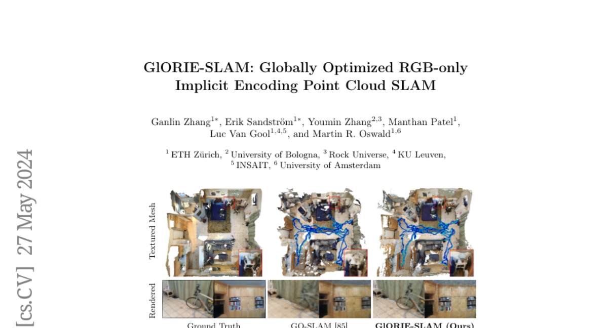 GlORIE-SLAM: Globally Optimized RGB-only Implicit Encoding Point Cloud
