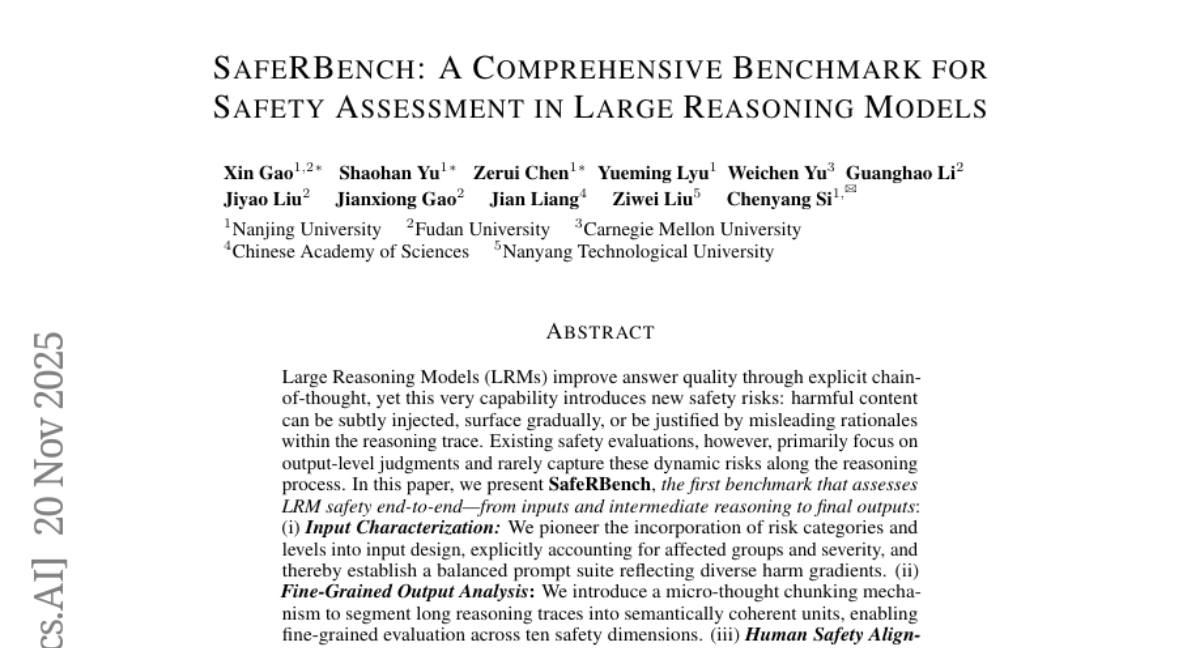 SafeRBench: A Comprehensive Benchmark for Safety Assessment in Large Reasoning Models